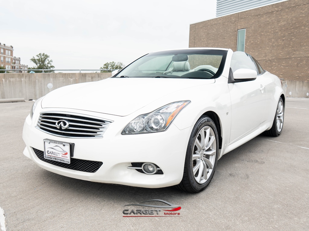 It delivers the leisure of top down wind through the hair motoring in a fully competent sport oriented and luxurious package! This 2 door, 4 passenger convertible has just over 80,000 miles. INFINITI infused the interior with top shelf amenities, such as: a power seat, a power convertible roof, and seat memory. INFINITI made sure to keep road-handling and sportiness at the top of it's priority list. A 3.7 liter V-6 engine pairs with a sophisticated 7 speed automatic transmission, and for added security, dynamic Stability Control supplements the drivetrain.